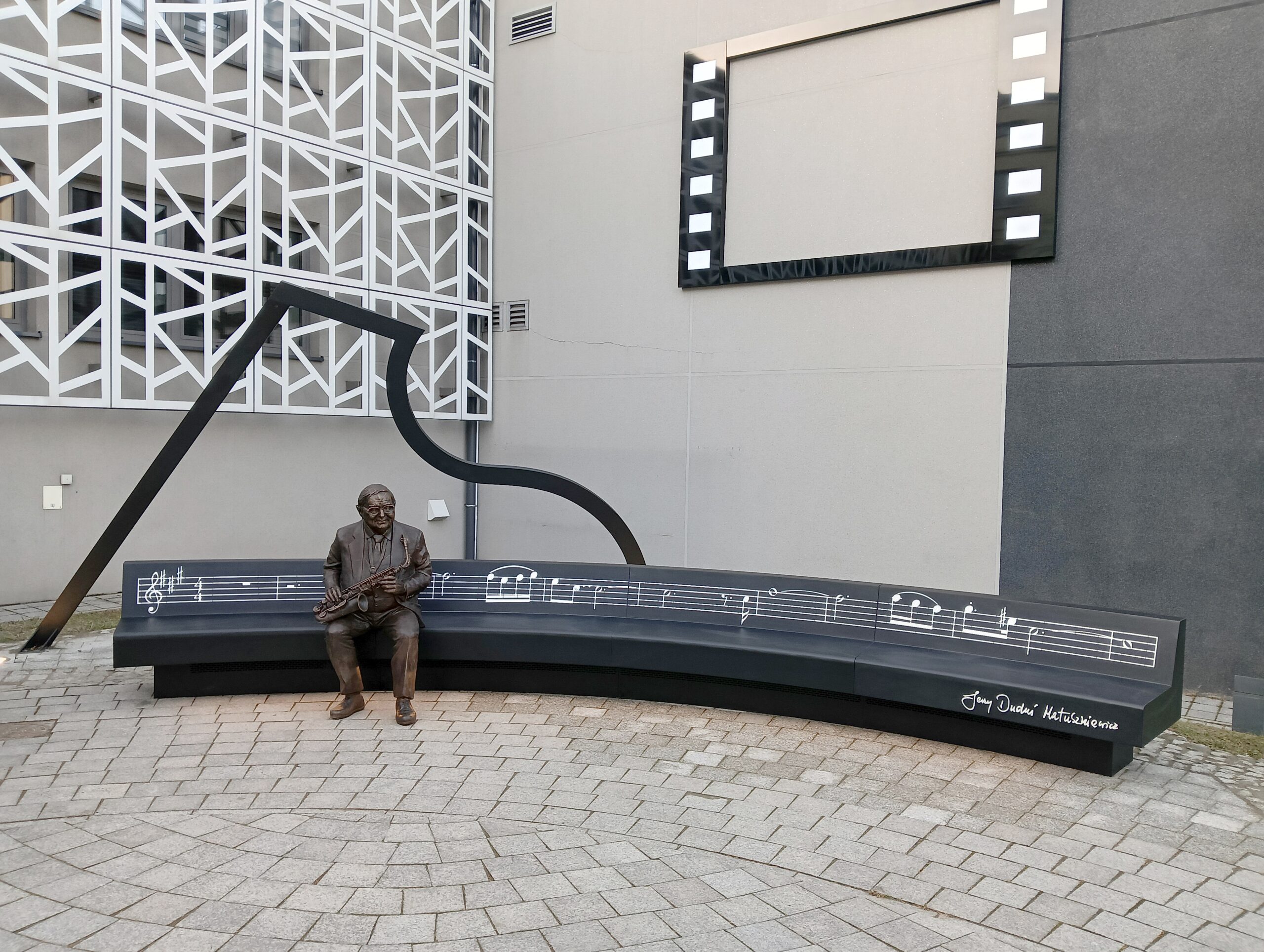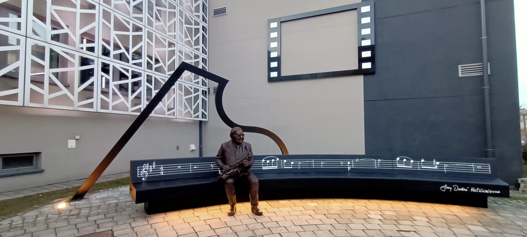 Wybitny kompozytor, ojciec polskiego jazzu, twórca polskiej muzyki filmowej- Jerzy Duduś Matuszkiewicz doczekał się w rodzinnym mieście Jaśle swojego pomnika. Twórca muzyki do wielu popularnych seriali i filmów m.in. „Czterdziestolatka”, „Janosika” czy „Wojny Domowej” został uhonorowany 6 metrową muzyczną ławeczką z naturalnej wielkości postacią z brązu. Muzyczna ławeczka – pomnik stanęła w grudniu 2023 na skwerze w pobliżu Jasielskiego Domu Kultury w Jaśle. Jesteśmy niezmiernie dumni z realizacji tego projektu.