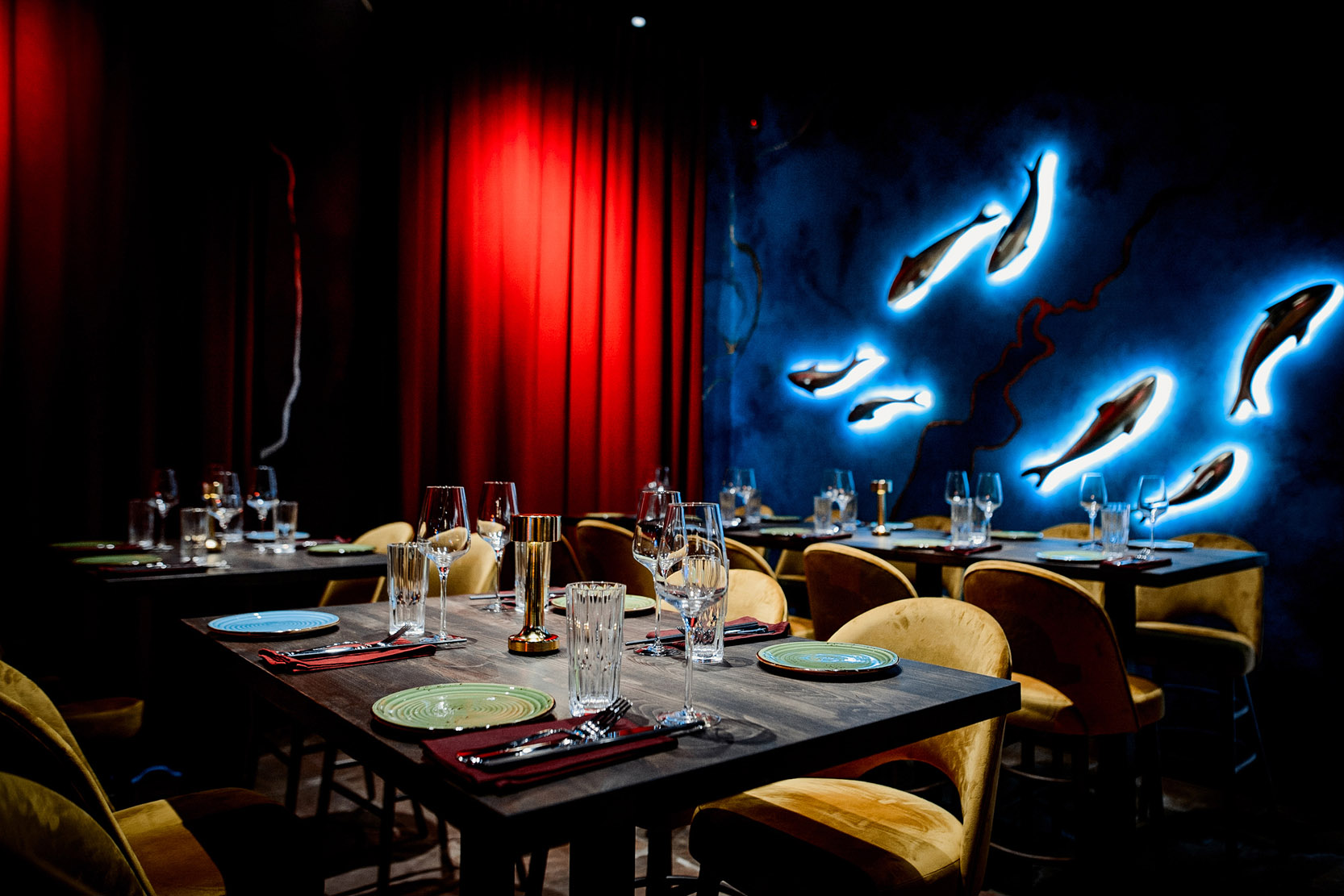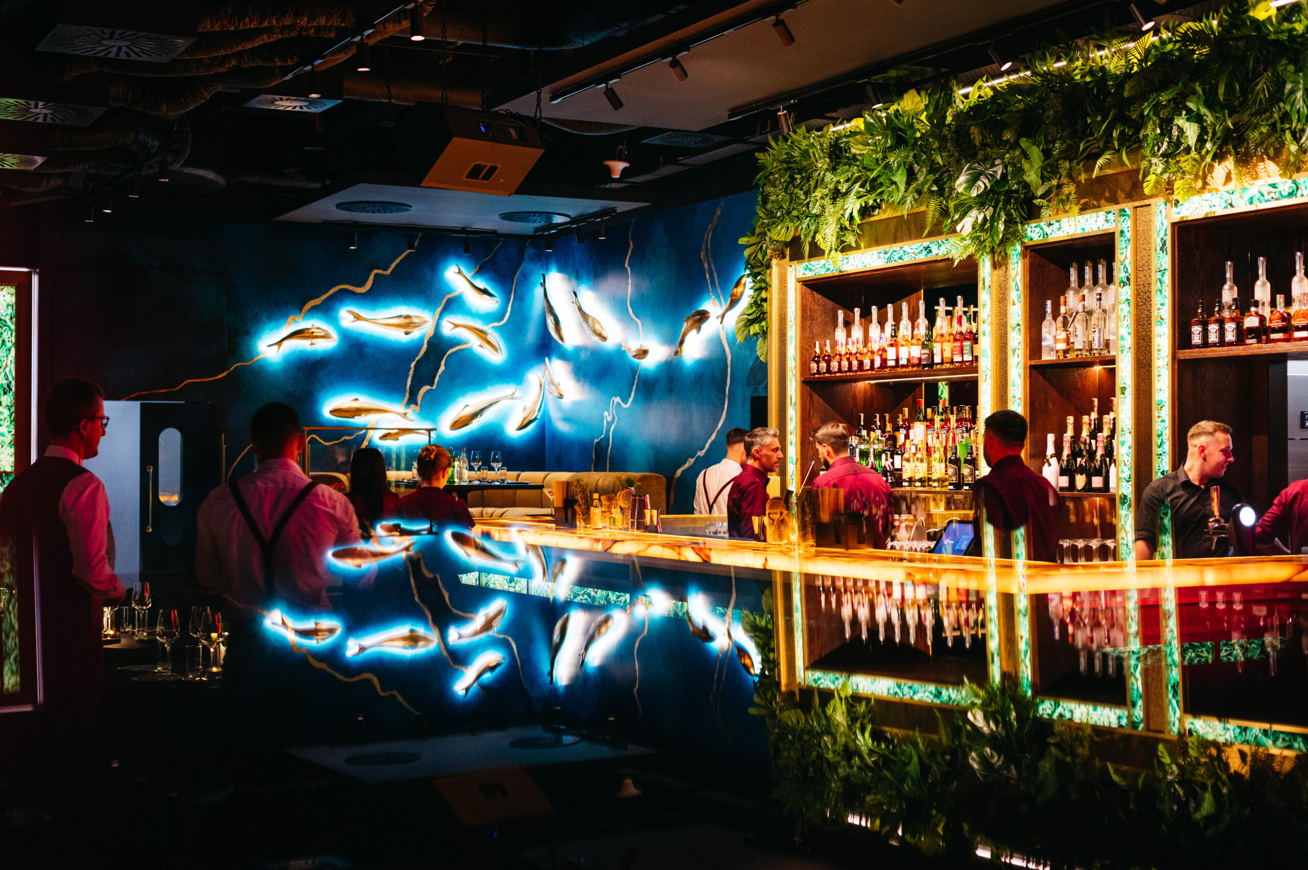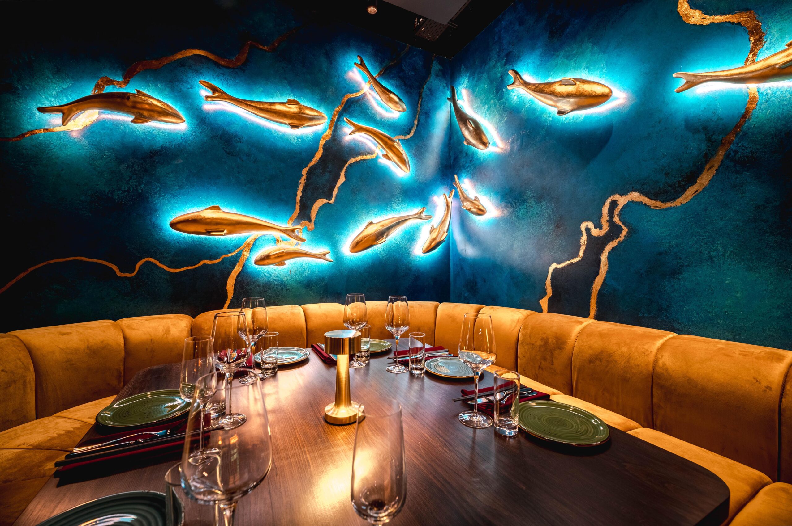Spotkała nas bardzo miła niespodzianka podczas oglądania filmu „Skołowani” w reżyserii Jana Macierewicza. W jednej z głównych scen Agnieszka Grochowska spotyka się z przyjaciółmi w Warszawskiej restauracji BAILA. Scena jest wyjątkowa, a tło jest niepowtarzalne, bo tworzy je wykonana przez naszą pracownię kompozycja z pozłacanych ryb o trzech różnych rozmiarach. Wyjątkowe miejsce.