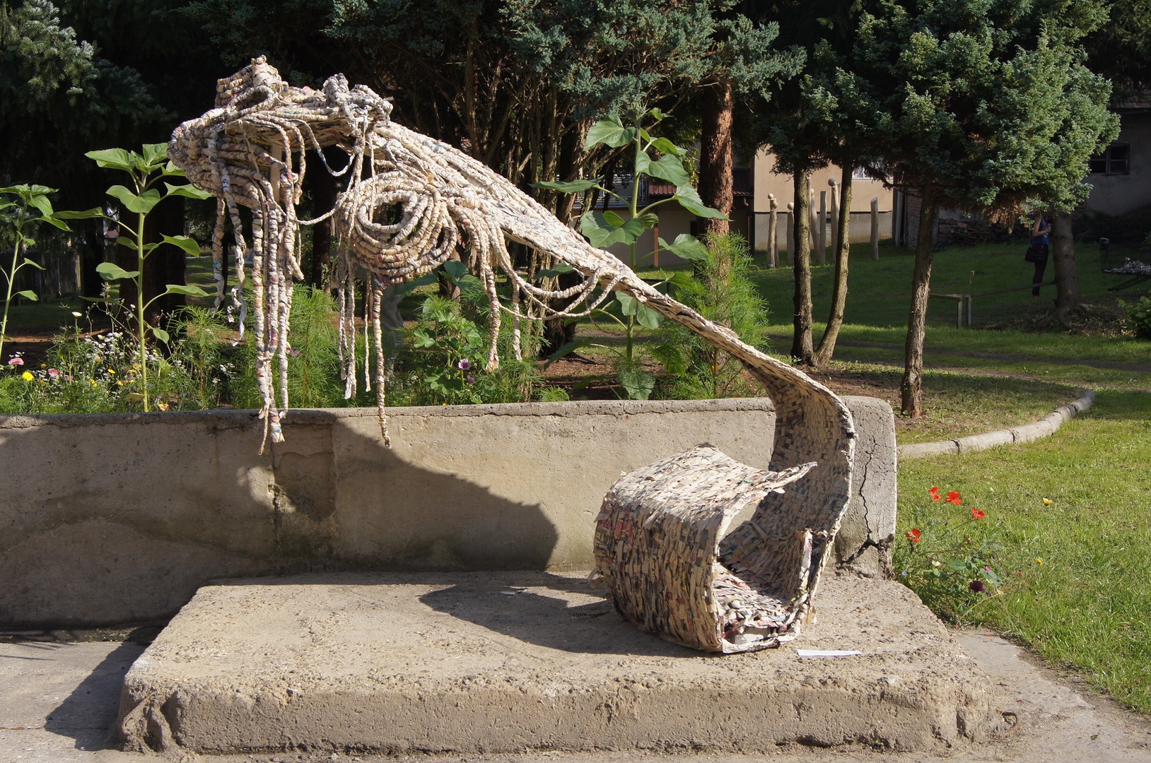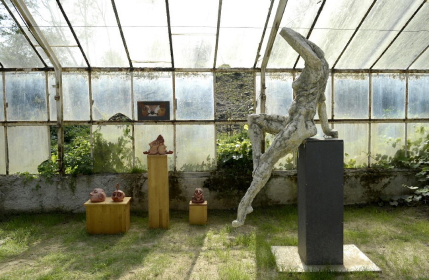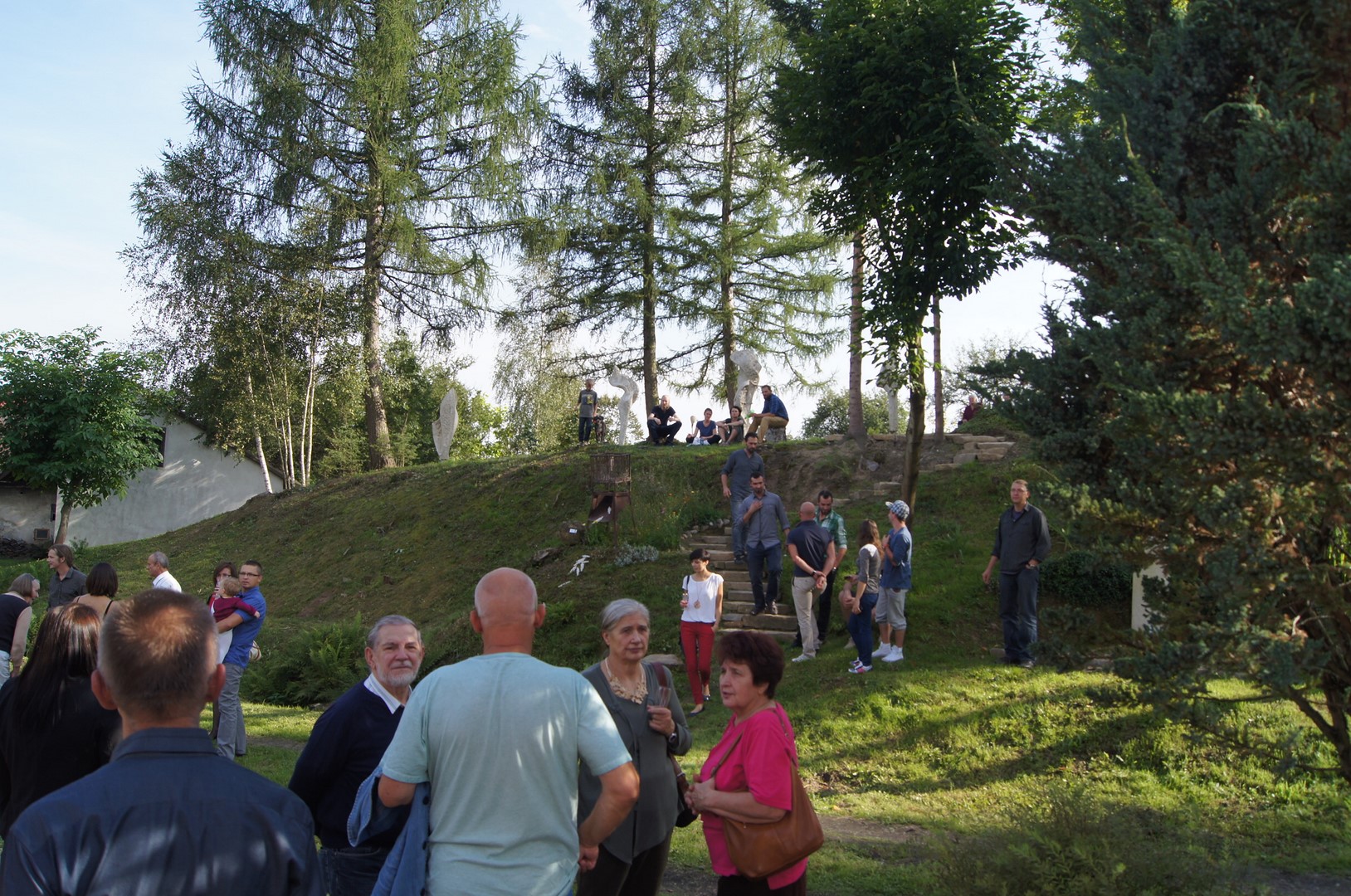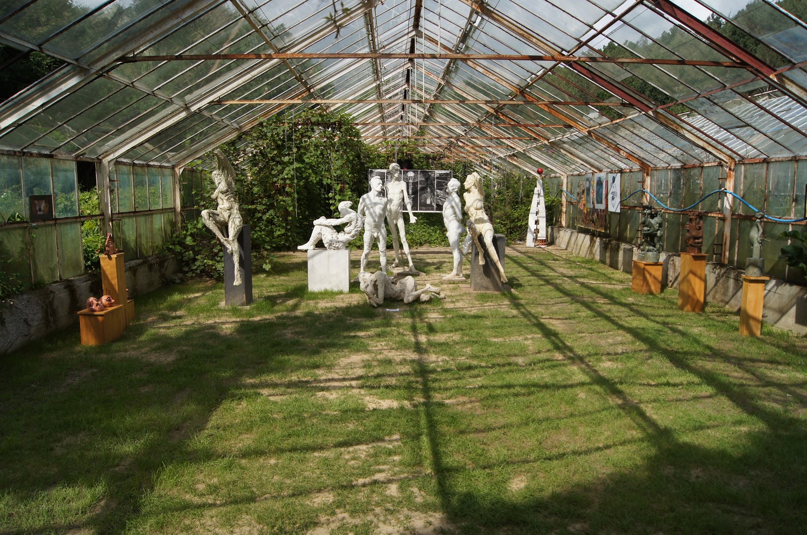 Pierwsze rzeźby pojawiły się w tej przestrzeni w 2013 roku. Natomiast w chwili obecnej jest ich na tyle więcej , że nazywamy to miejsce „ogrodem rzeźby”. Prezentujemy swoje własne autorskie realizacje rzeźbiarskie w liczbie 20 obiektów. Prezentowane prace wykonane są w różnych materiałach takich jak: sztuczny kamień, metal, drewno, żywica, gips. Rzeźby prezentowane są na terenie ogrodu, łąki, na drzewach, we wnętrzach szklarni. W większości obiektów natura wchodzi w skład całości kompozycji jak i treści.