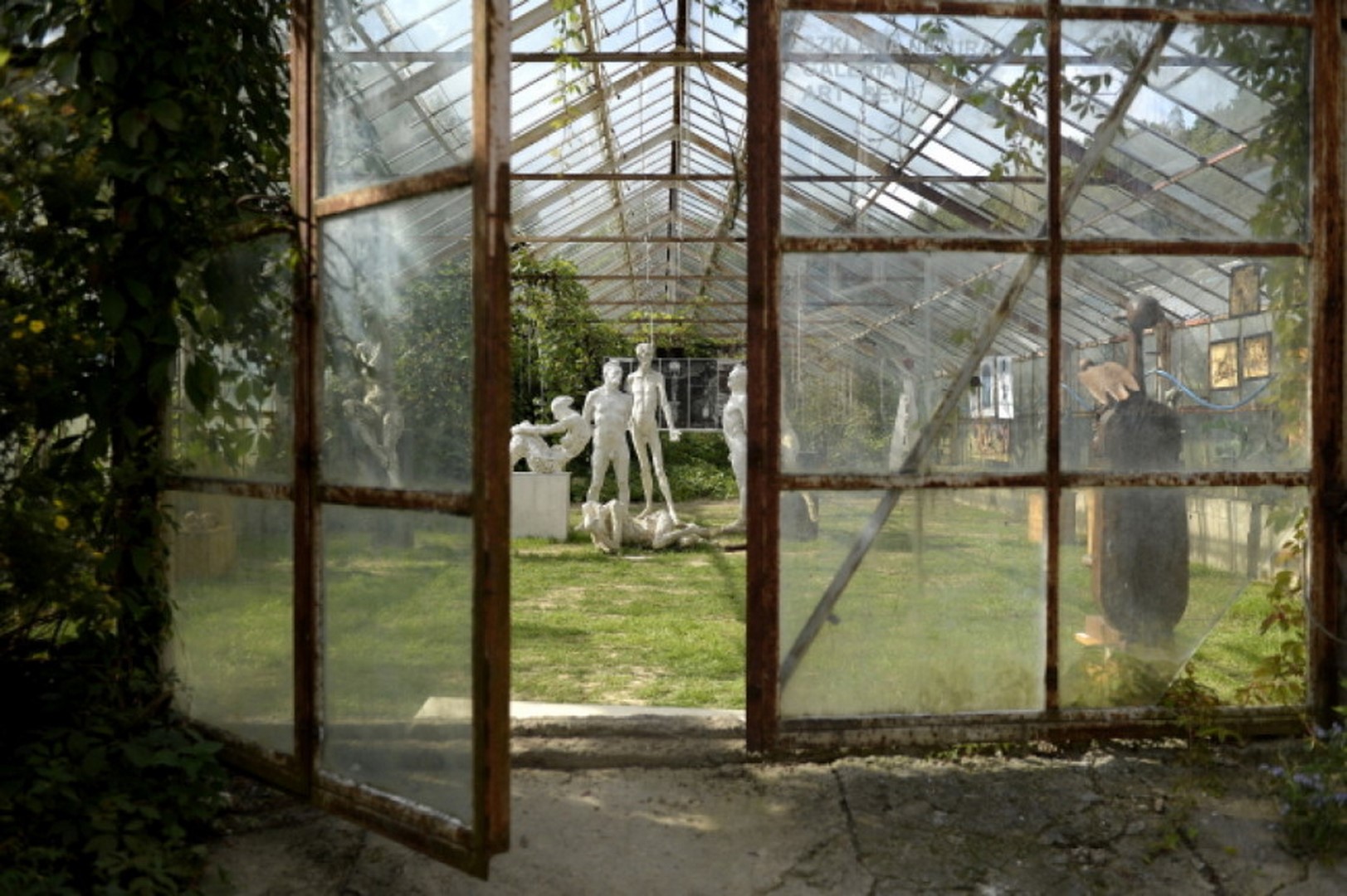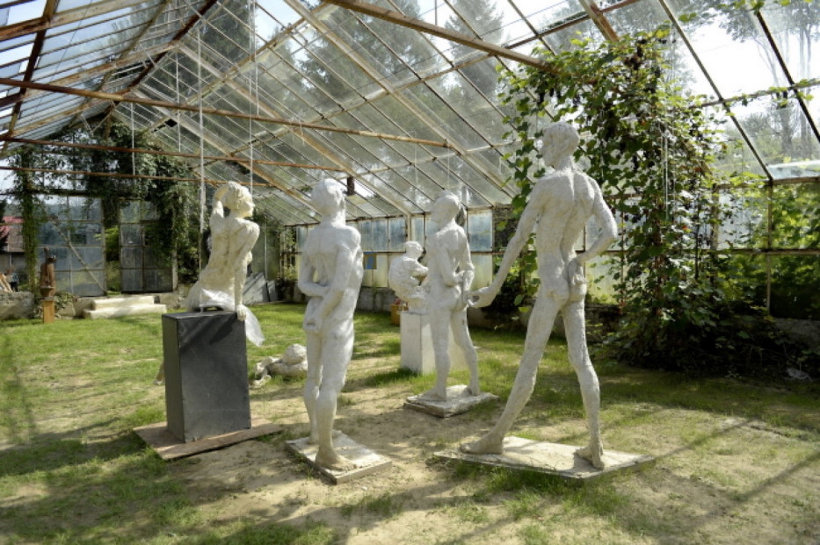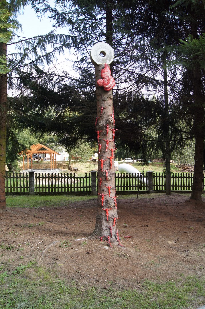 Pierwsze rzeźby pojawiły się w tej przestrzeni w 2013 roku. Natomiast w chwili obecnej jest ich na tyle więcej , że nazywamy to miejsce „ogrodem rzeźby”. Prezentujemy swoje własne autorskie realizacje rzeźbiarskie w liczbie 20 obiektów. Prezentowane prace wykonane są w różnych materiałach takich jak: sztuczny kamień, metal, drewno, żywica, gips. Rzeźby prezentowane są na terenie ogrodu, łąki, na drzewach, we wnętrzach szklarni. W większości obiektów natura wchodzi w skład całości kompozycji jak i treści.
