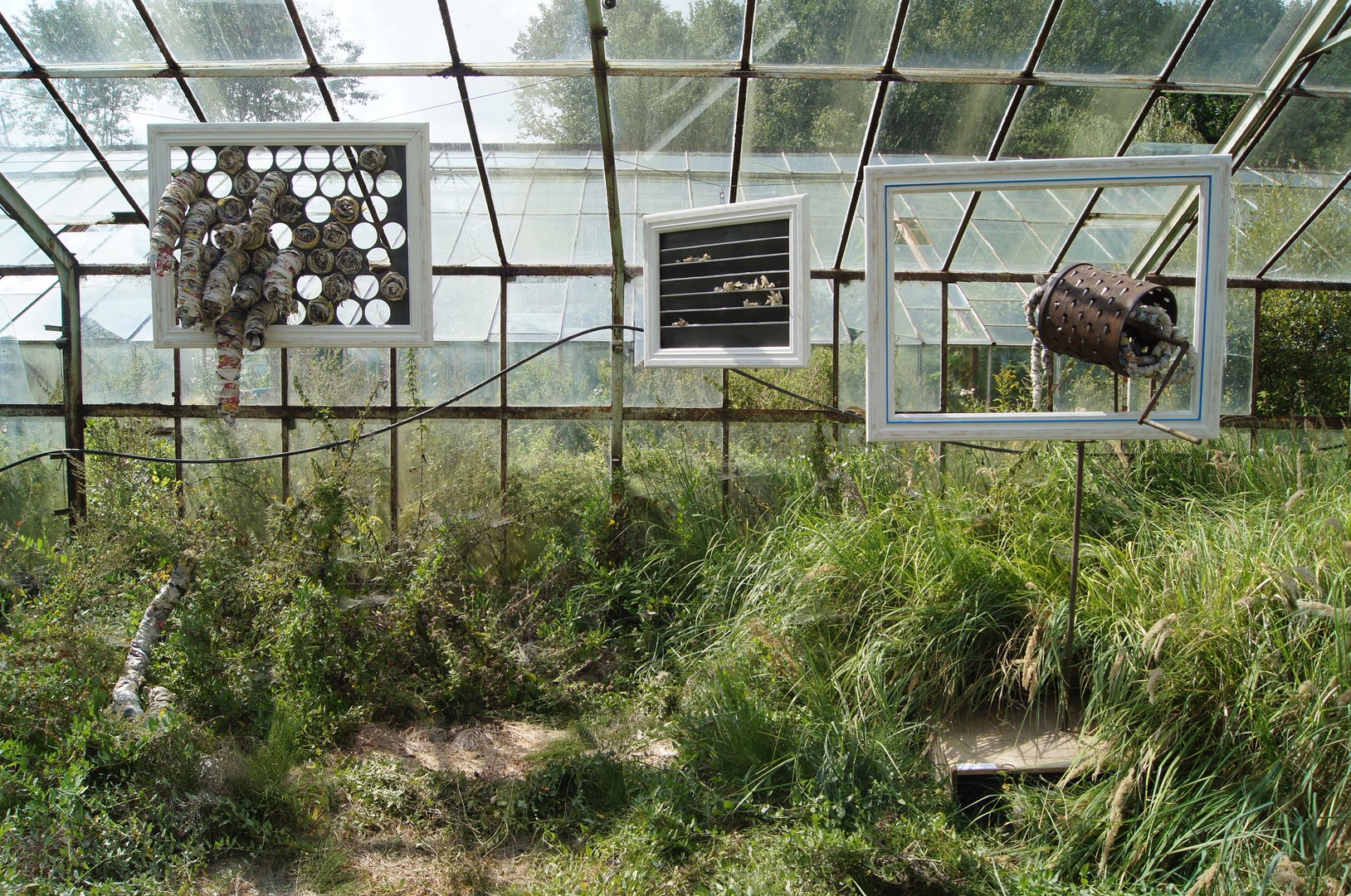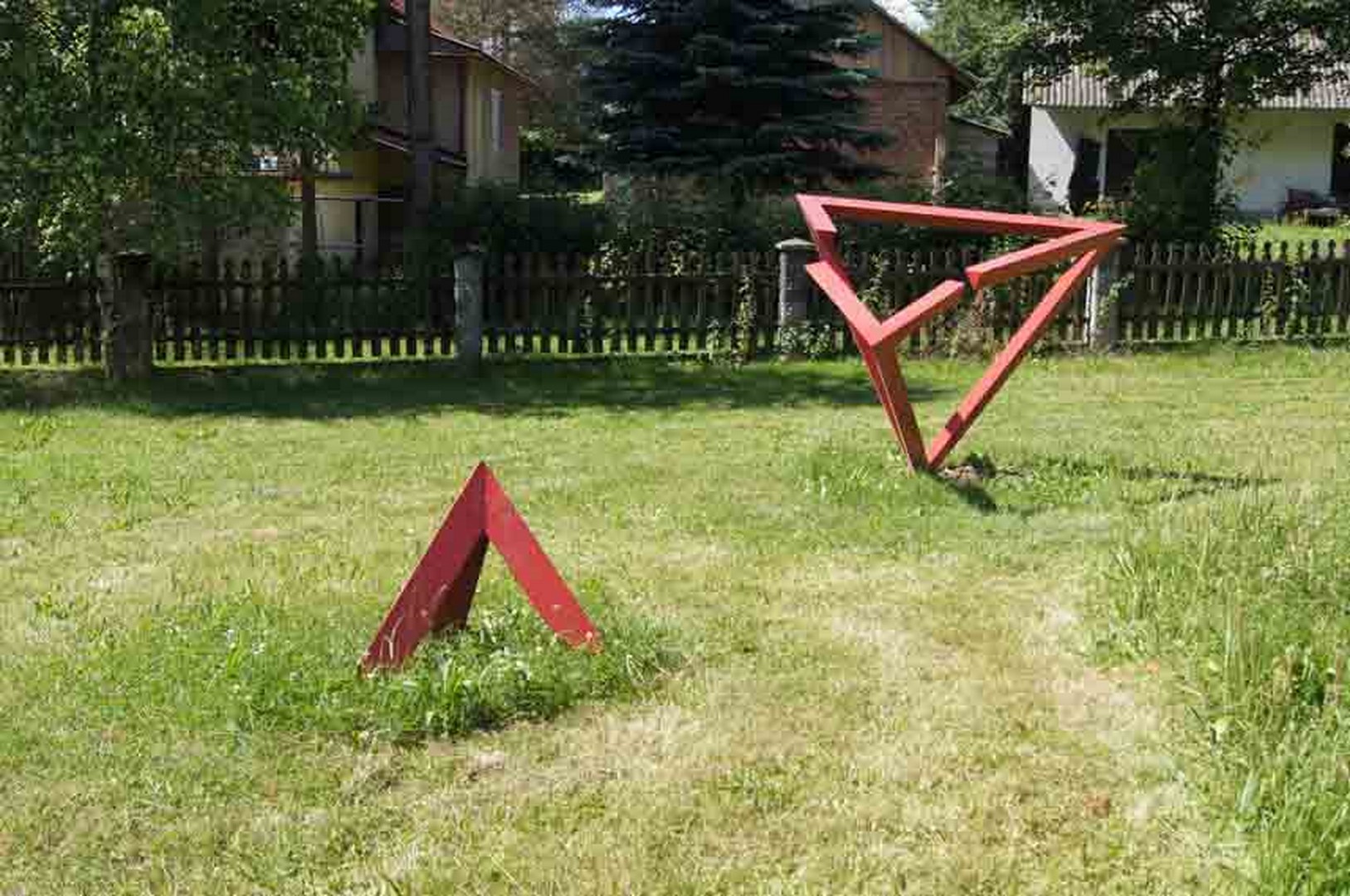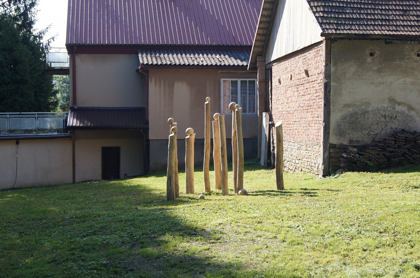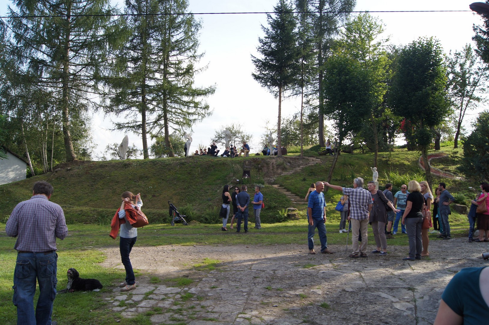 Pierwsze rzeźby pojawiły się w tej przestrzeni w 2013 roku. Natomiast w chwili obecnej jest ich na tyle więcej , że nazywamy to miejsce „ogrodem rzeźby”. Prezentujemy swoje własne autorskie realizacje rzeźbiarskie w liczbie 20 obiektów. Prezentowane prace wykonane są w różnych materiałach takich jak: sztuczny kamień, metal, drewno, żywica, gips. Rzeźby prezentowane są na terenie ogrodu, łąki, na drzewach, we wnętrzach szklarni. W większości obiektów natura wchodzi w skład całości kompozycji jak i treści.